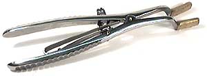 Oft pressen Patienten im Halbschlaf die Zähne so fest zusammen, daß man den Mund erst durch Aufspreizen der Kiefer öffnen muß. Dies geschieht durch die "Rosesche Mundsperre", deren geschlossene Branchen vorne in einem Keil auslaufen, der zwischen die Zahnreihen geschoben wird und sich dann durch Zusammendrücken des Handgriffes aufspreizt.